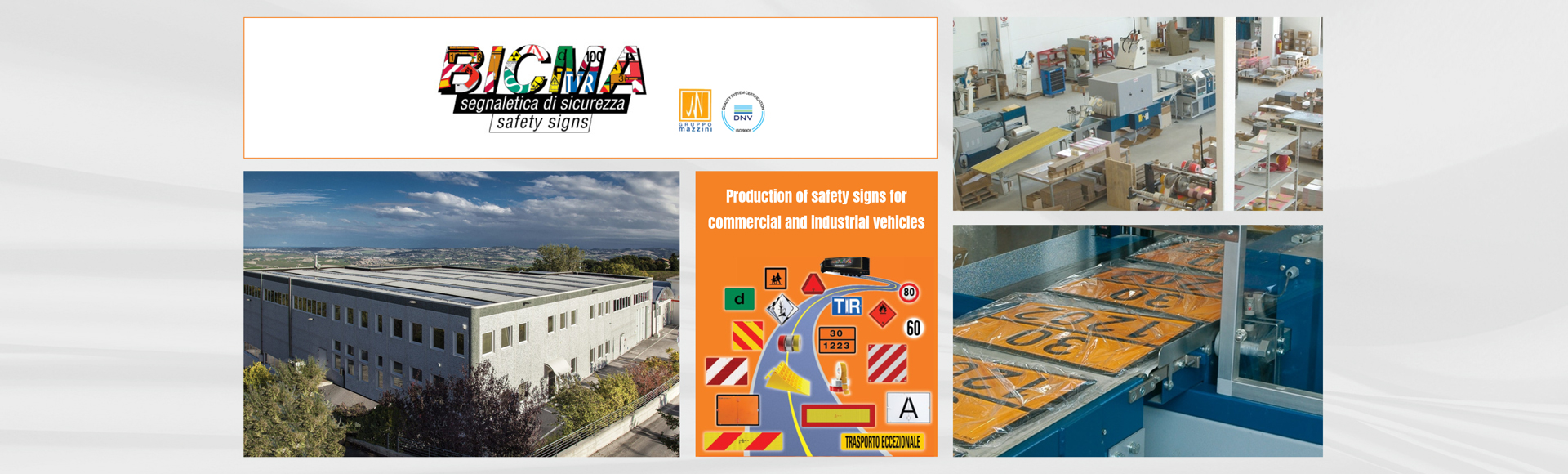 Bicma srl is a dynamic firm, which has succeeded in imposing its presence in the field of technical components for road transports, thanks to the reliability and efficiency which characterize the company and to the precision and accuracy which mark the production of accessories and safety signs for commercial and industrial vehicles.